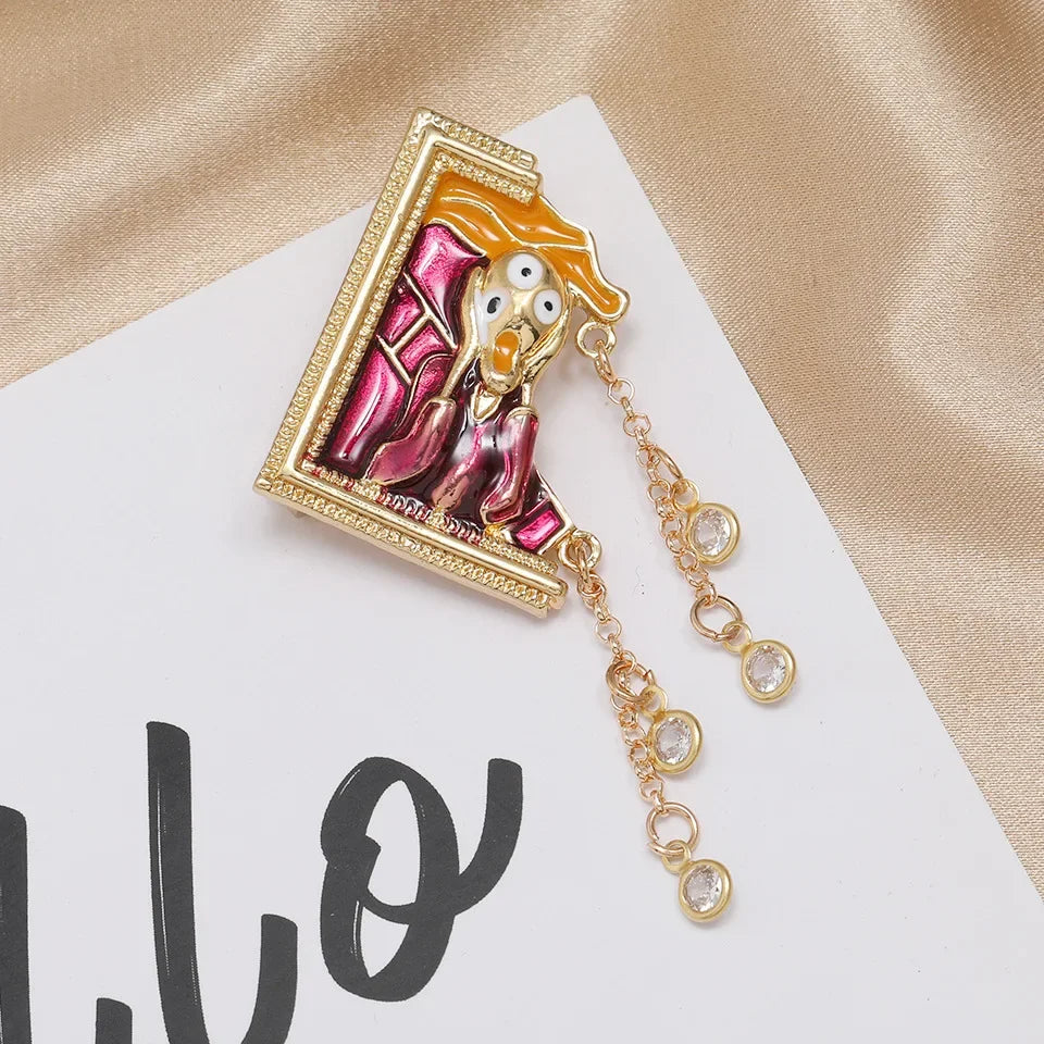 Vintage Enamel Drop Oil Sunflower Geometric Brooch Imitation Pearl Starry Sky Cat Tassel Badge Men/Women's Clothing Accessories